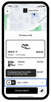 Once you’re set up, seamlessly switch between personal and business rides by toggling to your Business Profile right before you confirm your ride in the Uber app.
